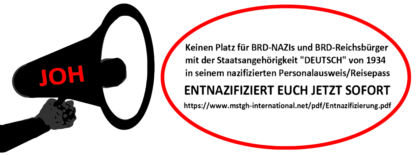 Hier entsteht in Kürze die Internetseite eines lebenden und beseelten Menschen als Angehörigen der Interim-Staaten GERMANITIEN & GERMANHUMANEN und somit um einen Angehörigen der christlich-germanisch indigenen Volksgruppen Germaniten und Germanhumanen. Der Inhaber dieser Internetseite ist durch Abstammung und Geburt (vgl. RuStAG vor 1913) Angehöriger der Deutschen Völker und Stämme / Staat Deutschland in seinen nach Völkerrecht gültigen Grenzen von 1914 (vgl. 2tes Deutsches Reich - Kaiserreich). Es besteht Exterritorialität nach Maßgabe des Wiener Übereinkommens über konsularische Beziehungen vom 24.04.1963 zur Bundesrepublik Deutschland in seinen Grenzen vom 31.12.1937 als Rechtsnachfolger des Dritten Reiches.